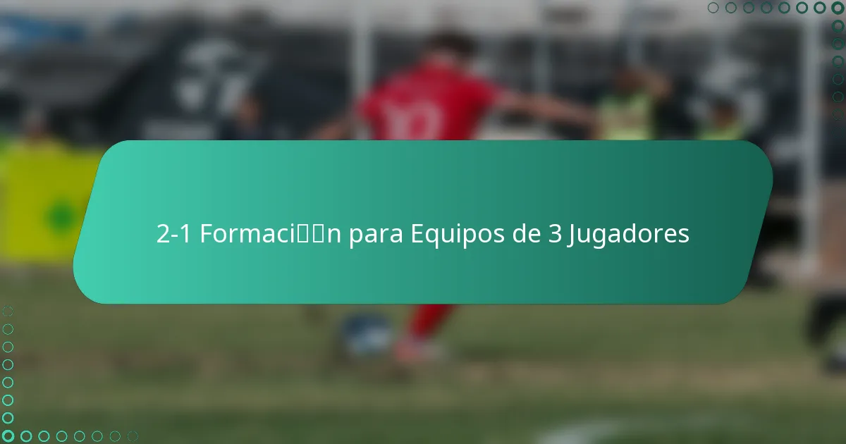 La formación 2-1 en el fútbol 3 contra 3 consiste en dos defensores y un delantero. Esta estructura enfatiza la estabilidad defensiva mientras permite oportunidades ofensivas, lo que la convierte en una opción popular entre los equipos que buscan equilibrar ambos aspectos del juego.