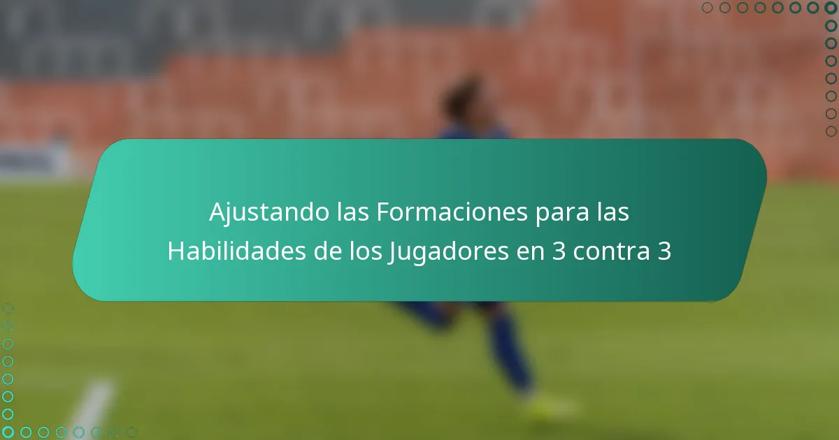 Evaluar las habilidades de los jugadores es crucial para hacer ajustes efectivos en la formación en un juego de 3 contra 3. Al comprender las fortalezas y debilidades de cada jugador, los entrenadores pueden optimizar el rendimiento del equipo y mejorar la estrategia general.