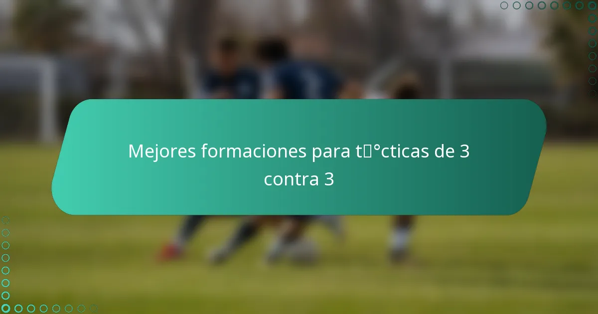 En el fútbol tres contra tres, se utilizan varias formaciones comúnmente, cada una ofreciendo ventajas tácticas únicas. Las formaciones más populares incluyen los esquemas 1-1-1, 2-1 y 1-2. Estas formaciones permiten a los equipos equilibrar el ataque y la defensa mientras mantienen un movimiento fluido en el campo.