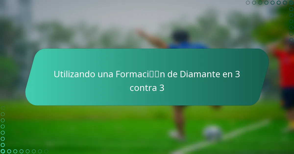 La formación en diamante en el fútbol tres contra tres es una disposición táctica que posiciona a los jugadores en forma de diamante para optimizar tanto las estrategias ofensivas como defensivas. Esta formación incluye típicamente un jugador en la parte trasera, dos en el centro del campo y uno en la delantera, lo que permite un movimiento fluido y apoyo en todo el campo.
